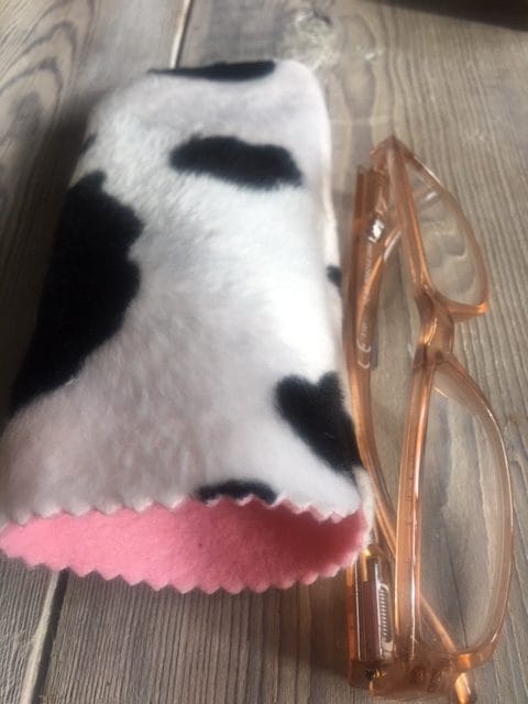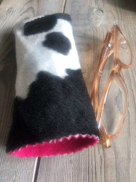Bril hoesje van zachte zwart wittekoeienprint. Aan de binnenzijde bekleed met vilt. Dit kunnen verschillende kleuren vilt zijn! Je kan dit hippe hoesje natuurlijk ook gebruiken voor je zonnebril. Past heel gemakkelijk in je handtas, doordat het niet zoveel ruimte inneemt als een harde brillenkoker.