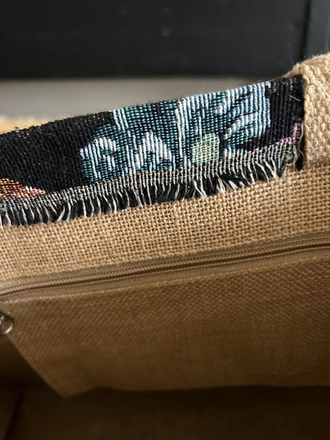 Duurzame jute shopper bekleed met gobelin black in vintage flower. Een mooie chique stof met grote klassieke bloemen. Voorzien van lange katoenen gewatteerde hengsels van 70 cm voor optimaal draagcomfort. Bovendien heeft de tas heeft een handig vakje met rits aan de binnenkant voor het opbergen van je portemonnee of mobiel. Een hele vrolijke tas die het ook goed doet als strandtas bijvoorbeeld!