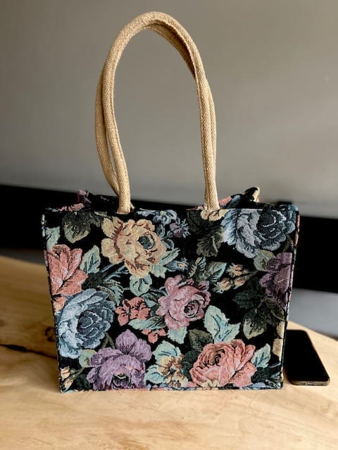 Duurzame shopper bekleed met gobelin black in vintage flower