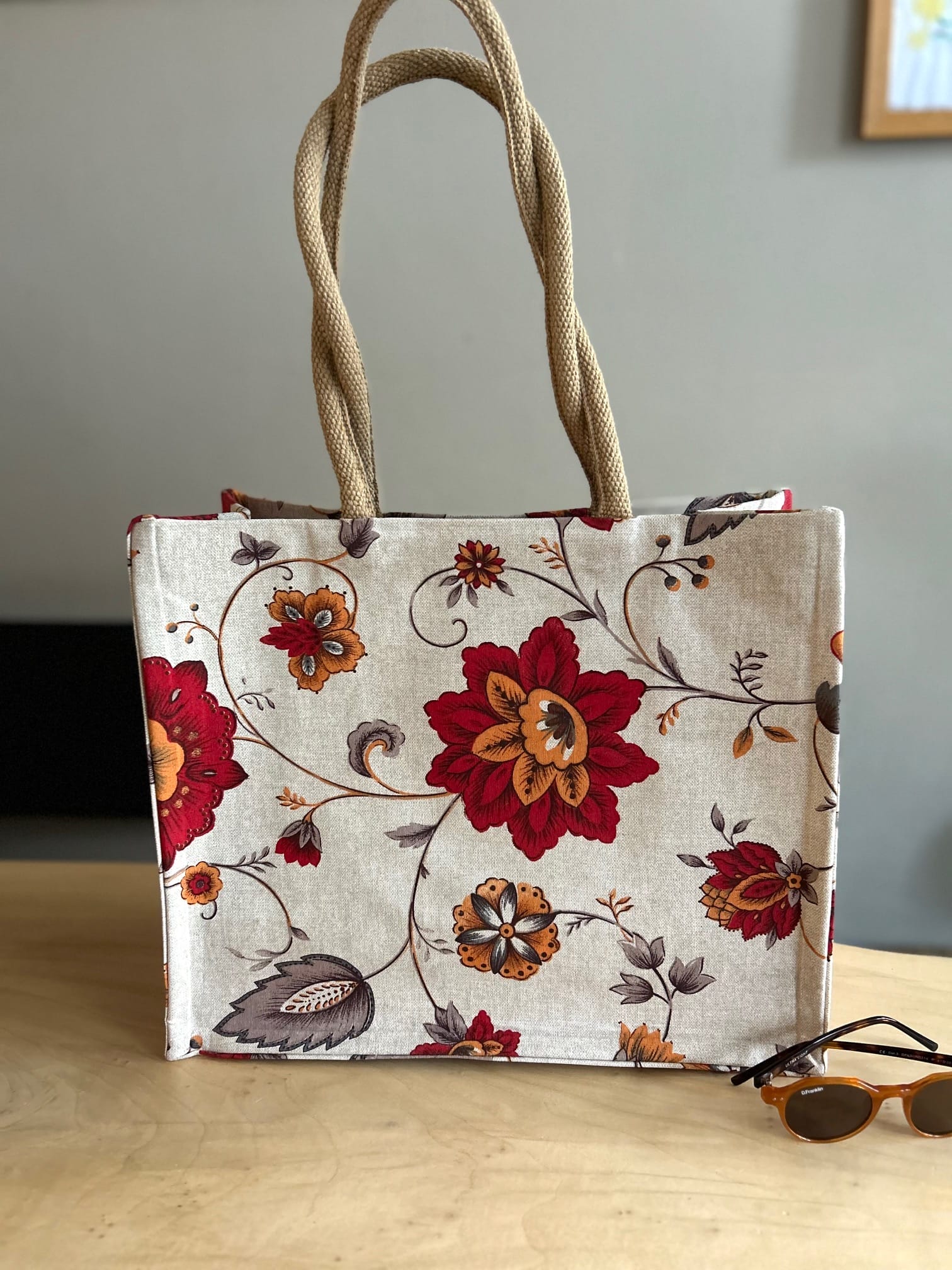 Duurzame shopper bekleed met katoenen stof met zomer bloemen. Echt een vrolijke tas, die ook superleuk is voor naar het strand bijvoorbeeld. Uitgevoerd met lange katoenen gewatteerde hengsels voor optimaal draagcomfort. De shopper is de tas voorzien van een handig vakje aan de binnenkant voor het opbergen van je portemonnee of mobiel.