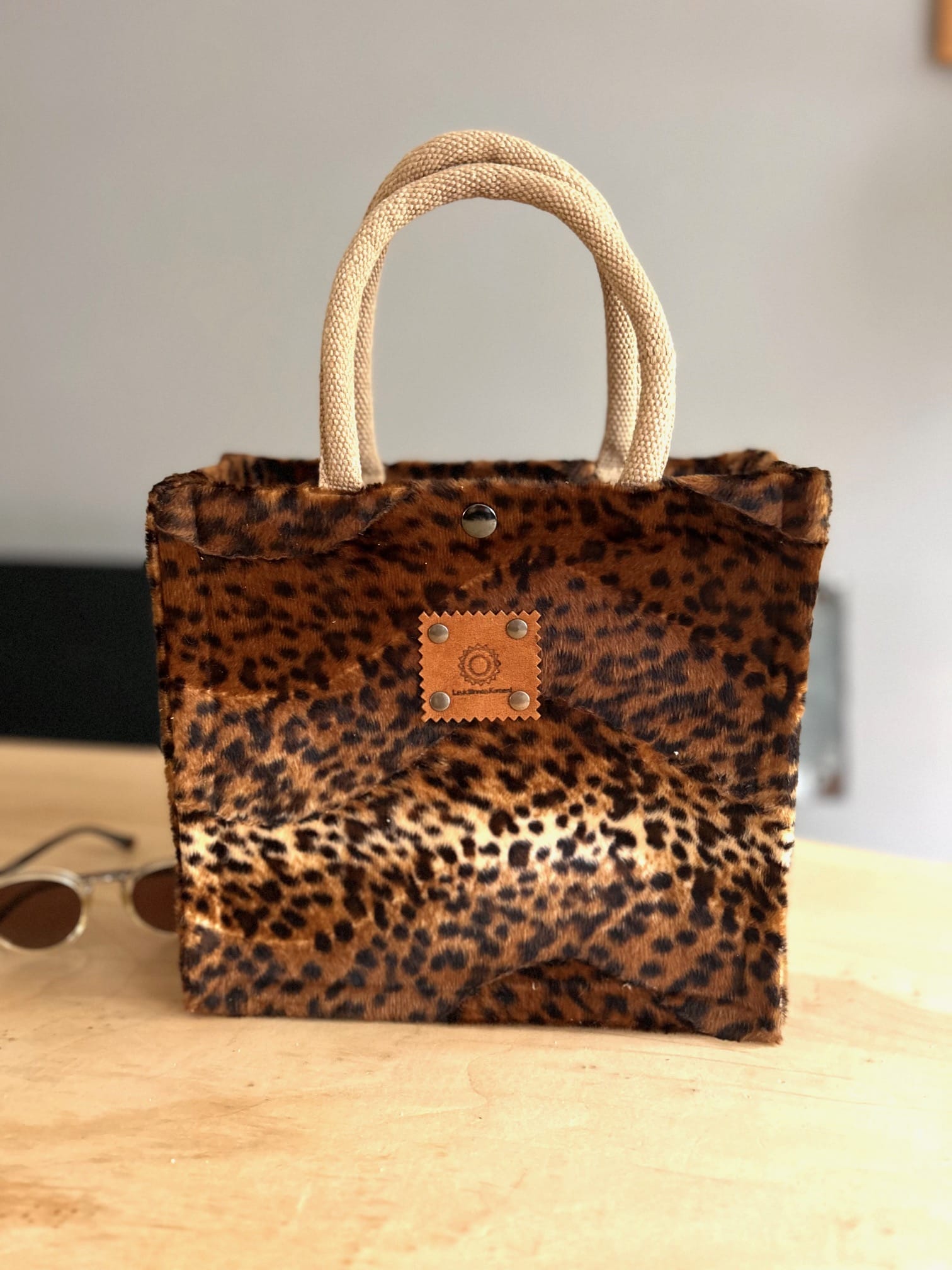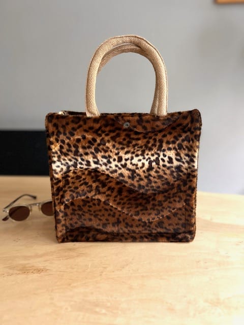 Handtas bekleed met klein panterprint brons. Een lekkere zachte stoeide door de bronzen gloed een chique uitstraling heeft. Uitgevoerd met luxe katoenen gewatteerde hengsels van ± 40 cm voor optimaal draagcomfort. Bovenin kan je het tasje afsluiten met een drukker. Een grote portemonnee past erin, en je flesje water of thermosfles kan er rechtop in staan. Ook leuk als lunchtasje of naar school.