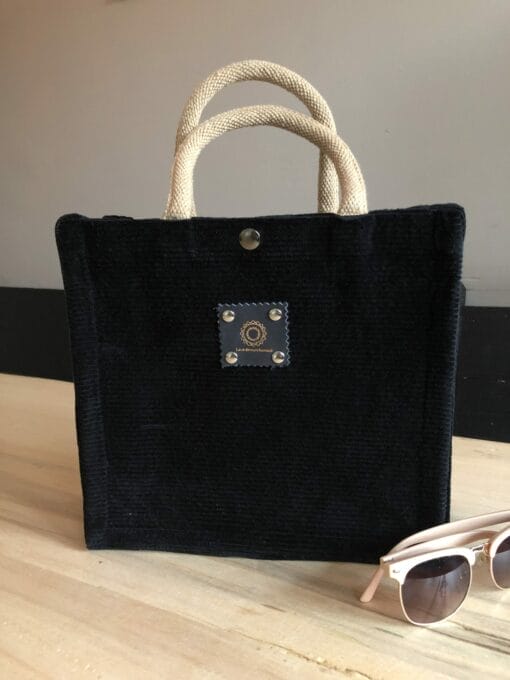 Handtas bekleed met stoere zwarte ribcord. Uitgevoerd met luxe gewatteerde hengsels van 40 cm voor optimaal draagcomfort. Deze stof is gewassen en in de droger gedaan, waardoor de brede ribcord een speciaal effect krijgt! Je thermosfles, of waterflesje past rechtop in het tasje. En daarbij kan nog makkelijk je lunch, portemonnee en toilettasje(ook van LBK! natuurlijk) handen! Bovenin af te sluiten met een drukker. Leuk als lunchtasje naar school, of naar je werk, of gewoon als handtas.