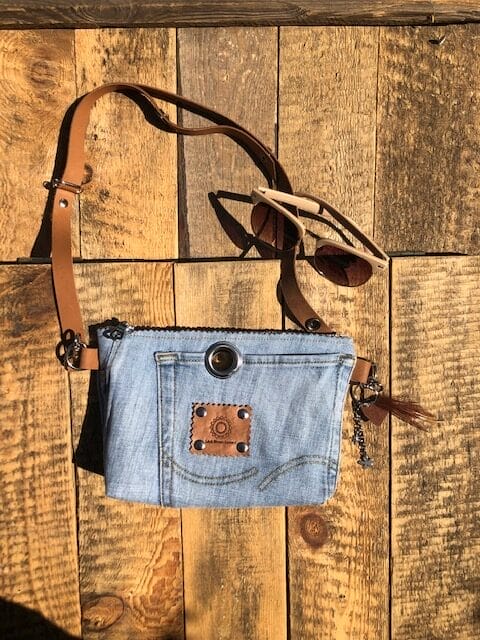 Heuptas Ibiza-style van blue denim met verstelbare leren riem. Dit tasje maken we van ‘oude’ spijkerkleding, en dus altijd een uniek exemplaar! Je kan de riem verlengen zodat je het tasje kan dragen als fannypack, of schoudertas. Aan de bovenkant zit een rits. Er is ruimte voor je telefoon, klein portemonneetje, lippenstift, en eventueel een bril. Super handig voor een feestje of festival. De onderkant hebben we wat breder gemaakt ± 3 á 4 cm, lekker overzichtelijk dus. De sleutelhanger krijg je erbij!