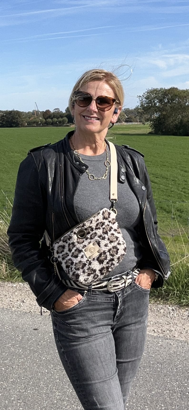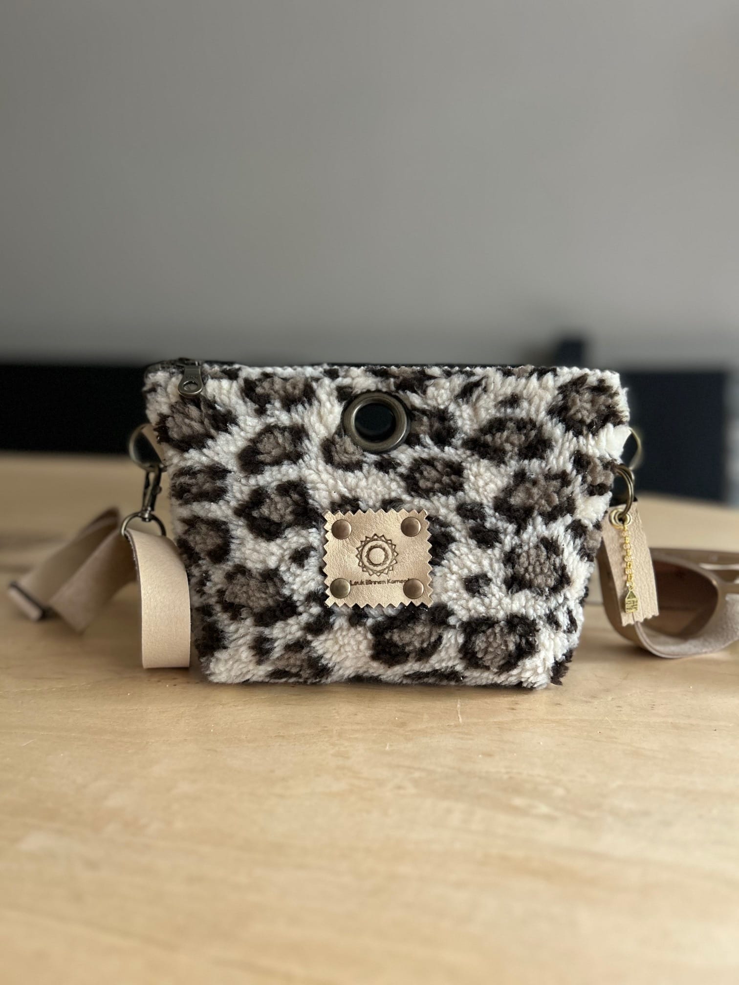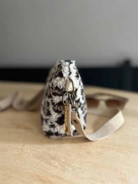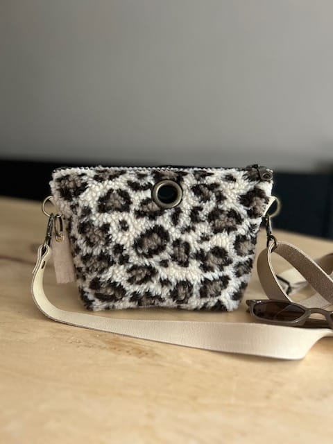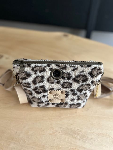 Heuptas van beige teddy panter met verstelbare leren riem