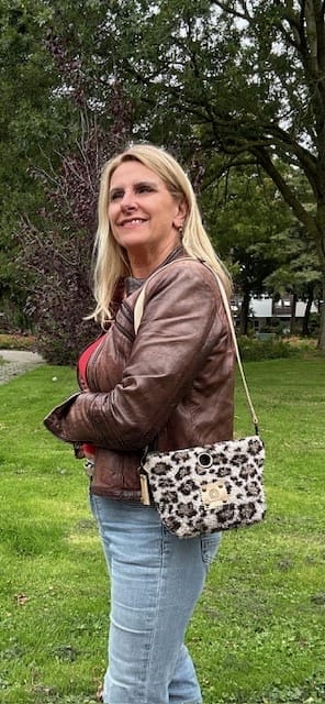Heuptas van beige teddy panter met verstelbare leren riem. Een lekkere zachte teddy met leuke panterprint. Het tasje is aan de binnenkant verstevigd met vilt. Je kan de riem verlengen zodat je het tasje kan dragen als fannypack, of schoudertas. Aan de bovenkant zit een ritsje. Er is ruimte voor je telefoon, klein portemonneetje, lippenstift, en eventueel een bril. De onderkant is wat breder gemaakt ± 4 á 5 cm, lekker overzichtelijk dus. De sleutelhanger krijg je erbij! Wil je een lang hengsel, dan kan dat ook, zet dan even de lengte erbij die jij prettig vindt.