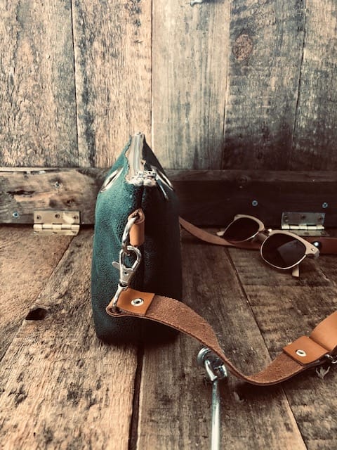 Heuptasje van petrolgroene leatherlook met verstelbare leren riem