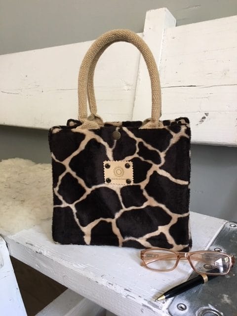 Kleine jute tas bekleed met bontachtig donkerbruine giraffeprint. De stof voelt heerlijk zacht aan. Uitgevoerd met luxe gewatteerde hengsels van 40 cm voor optimaal draagcomfort. De hengsels snijden niet in je handen! Leuk als lunchtasje naar school, of naar je werk, maar ook als handtas heel handig! Af te sluiten met een drukker aan de bovenkant.