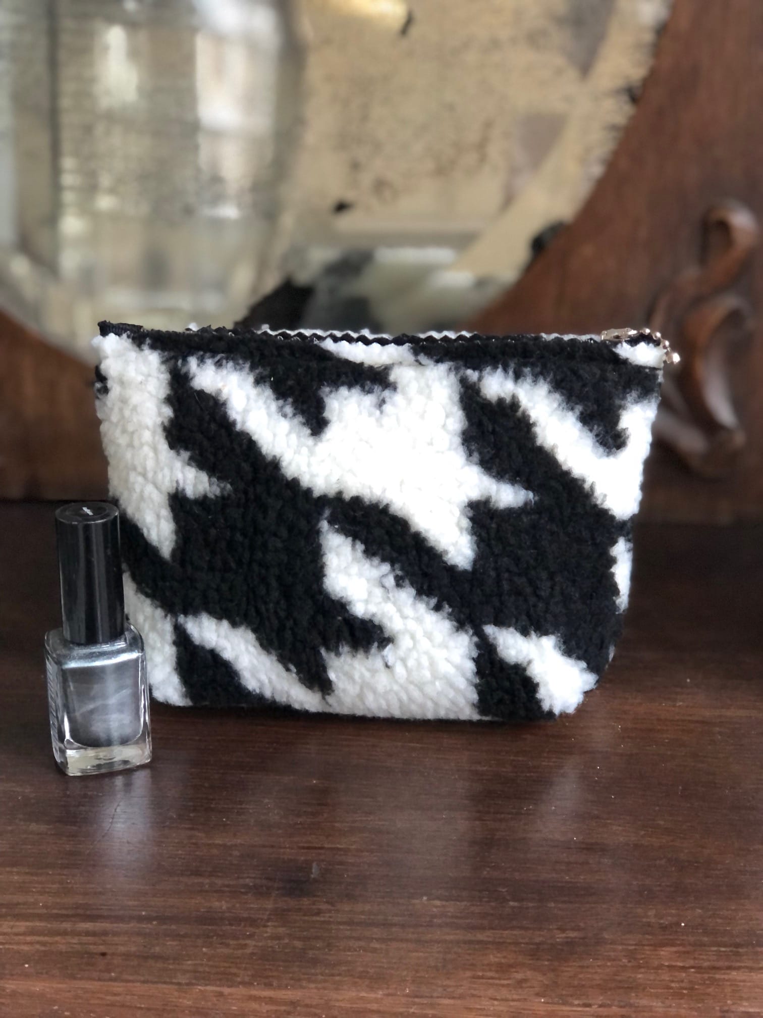 Make-up tasje met ritsje van teddy in Pied de Poule ruit