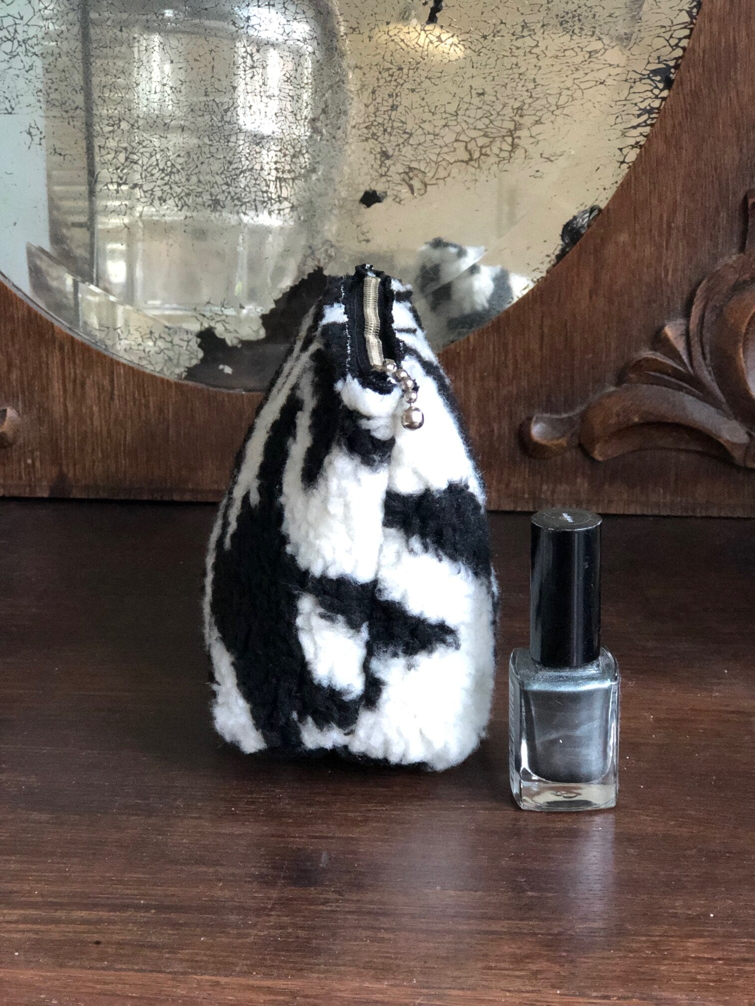 Make-up tasje met ritsje van teddy in Pied de Poule ruit . Aan de binnenzijde bekleed met zwart vilt. En natuurlijk een handig ritsje. Size S , daar kan nog verrassend veel in! Ook verkrijgbaar in M en L, als je die wilt kan je even mailen hoe je die kan bestellen.