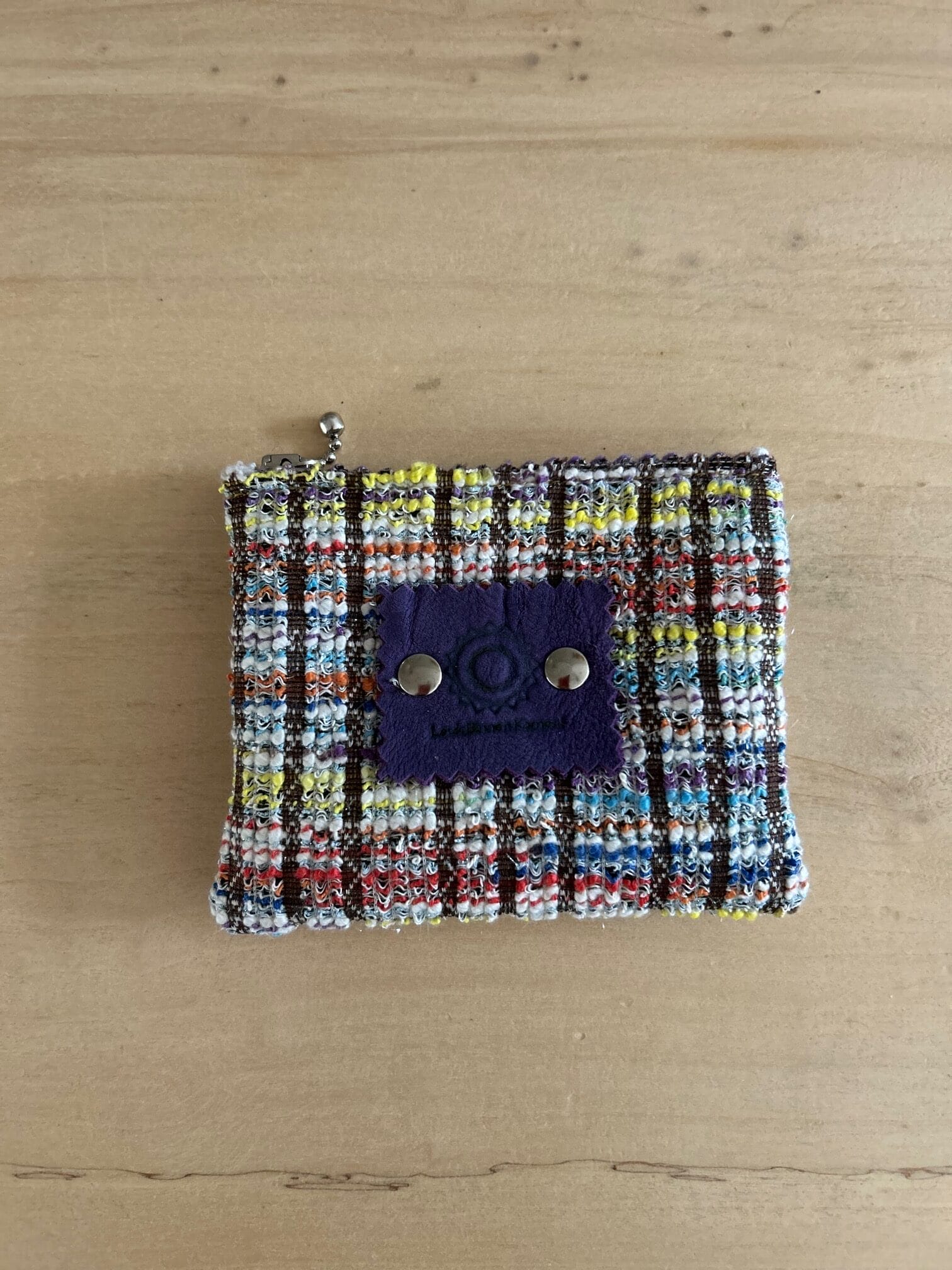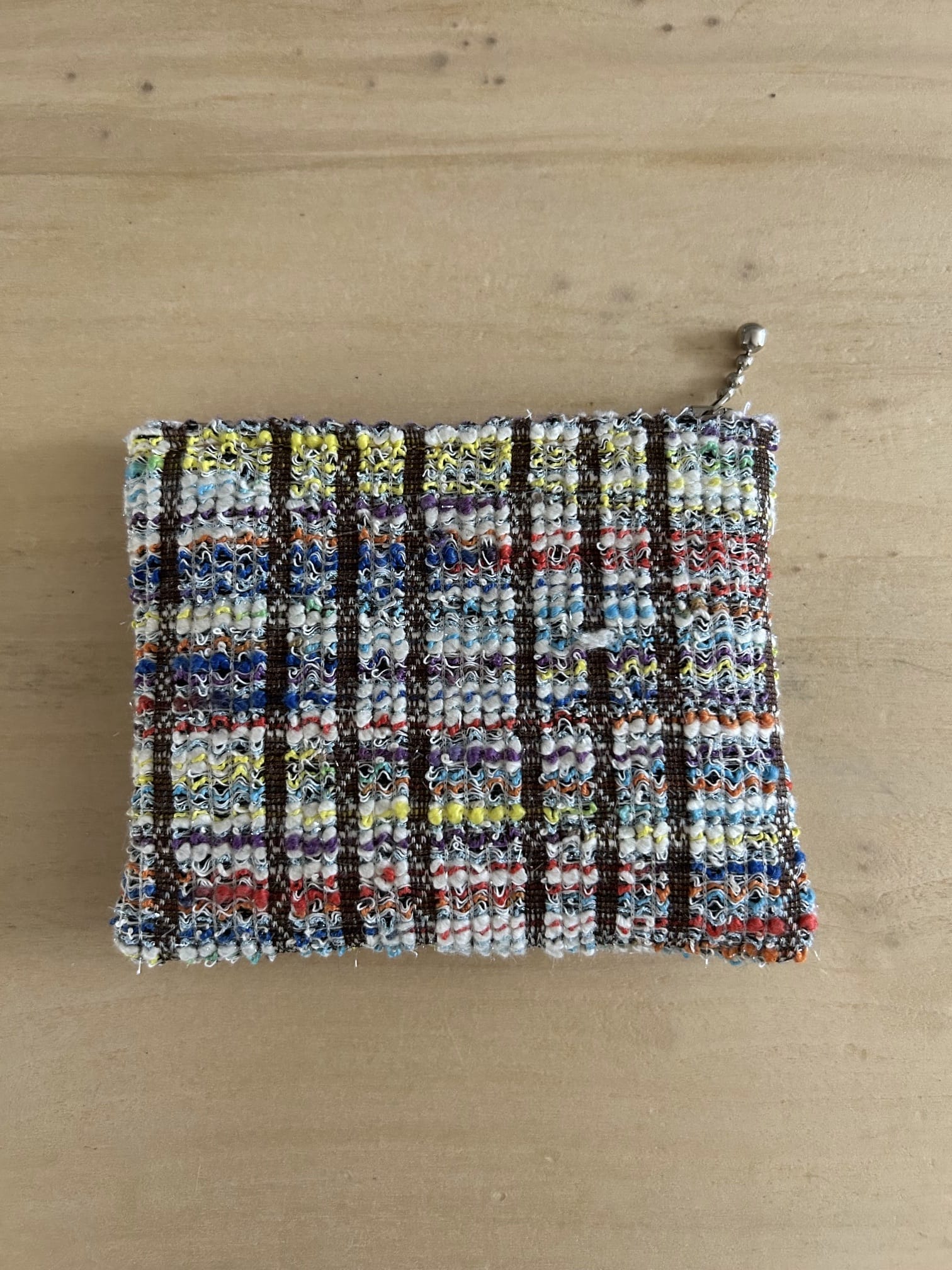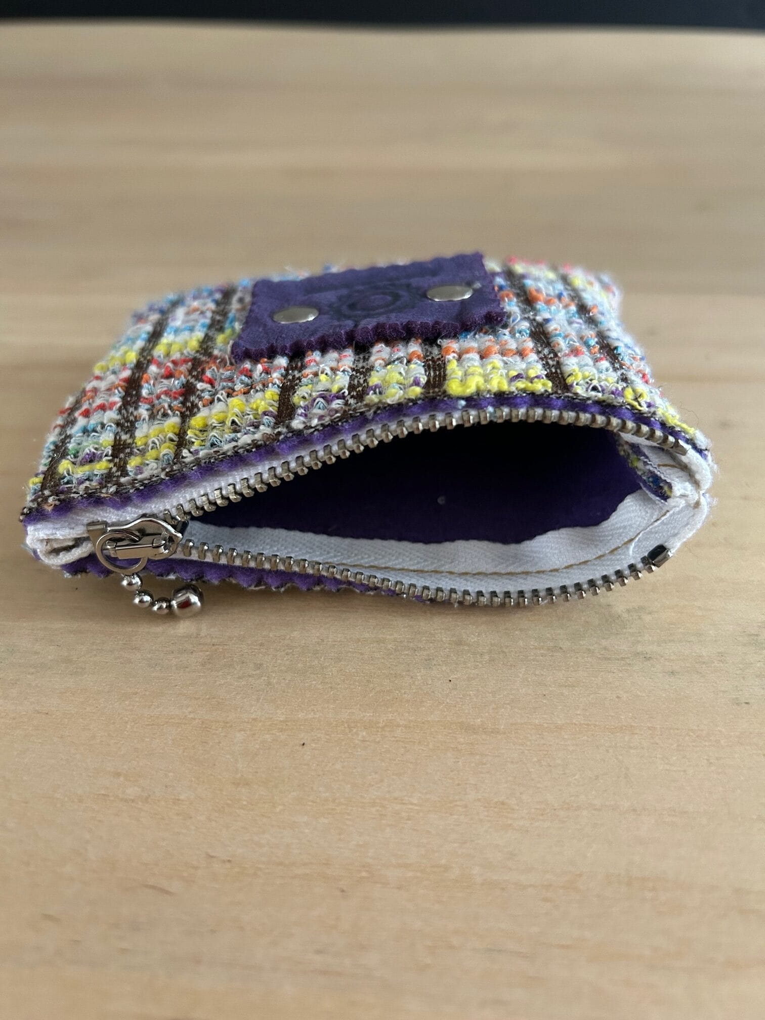Portemonneetje met rits van chique Sjanelli Multicolor. Een hele vrolijke stof met een klein glinsterdraadje erdoor. Aan de binnenkant bekleed met vilt, dit kan ook een andere kleur dan op de foto zijn. Heel handig voor je pasjes en losse geld in je festivaltasje.