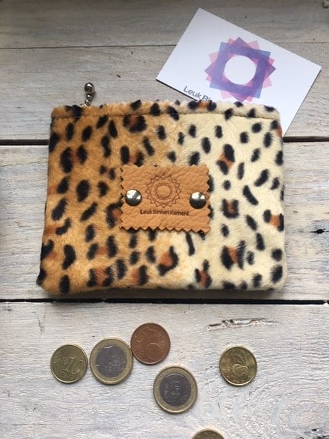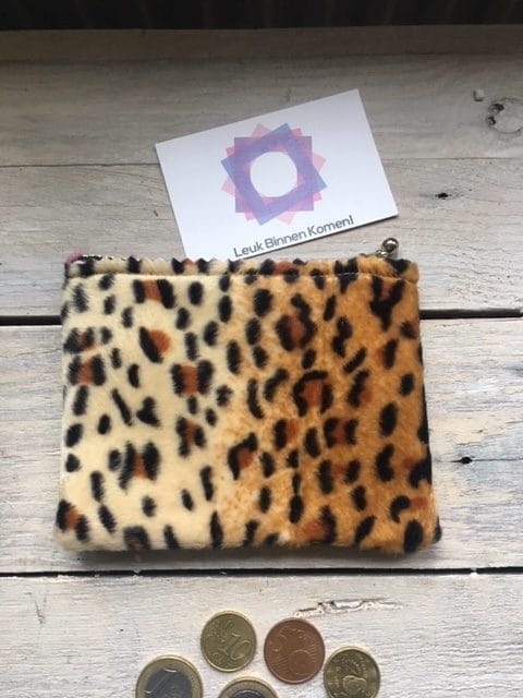Portemonneetje van zachte bontachtige stof in luipaardprint aantal